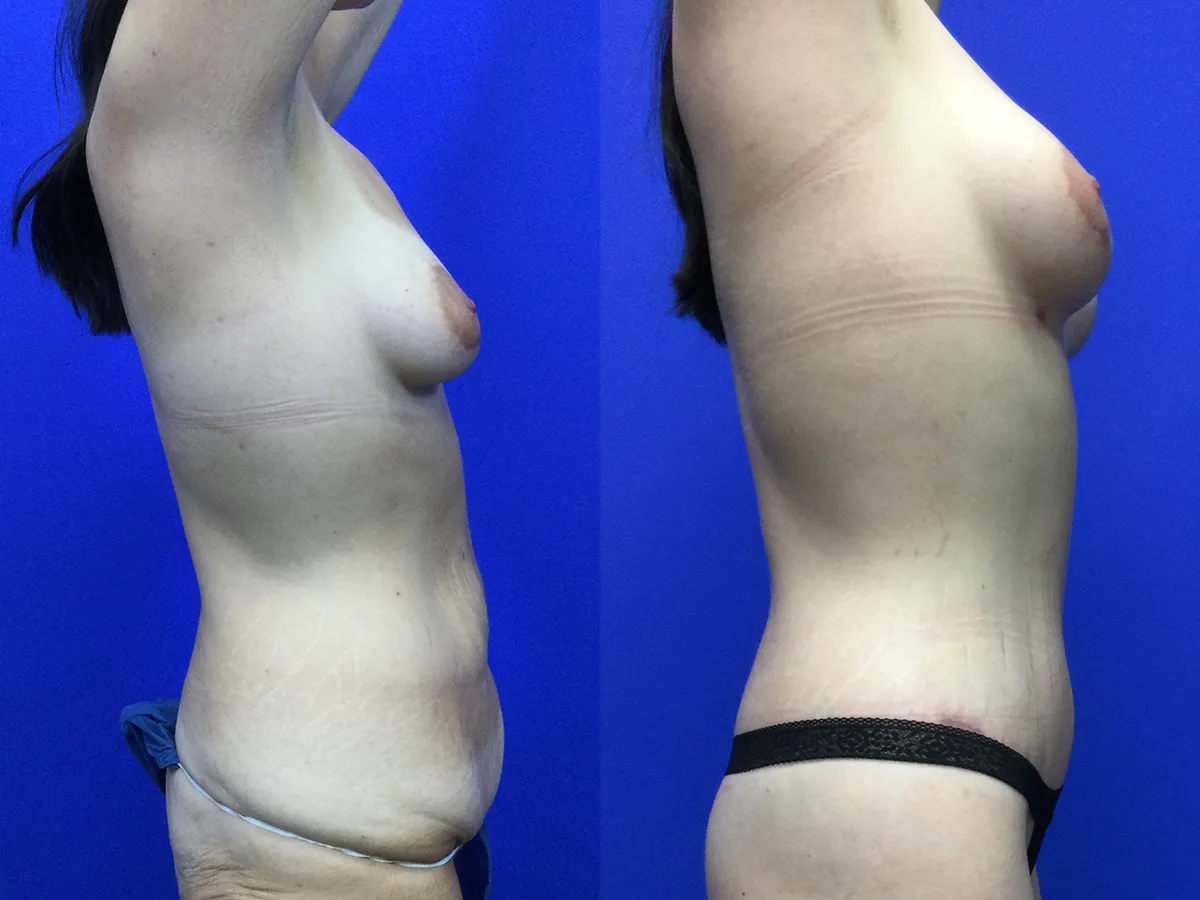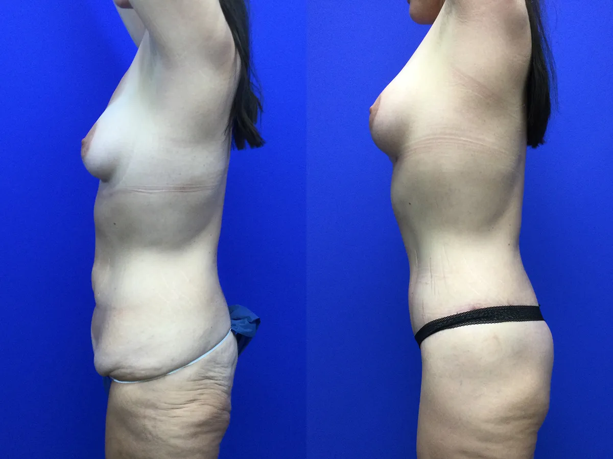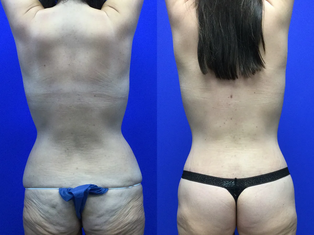 Patient in her 30s with weight loss shown before and after tummy tuck/lower body lift with 360 high definition liposuction and Brazilian butt lift.