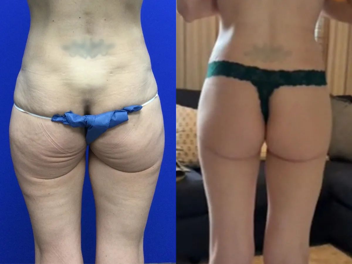 Patient in her 40s shown before and after drainless lower body lift with lower buttock lift and BBL